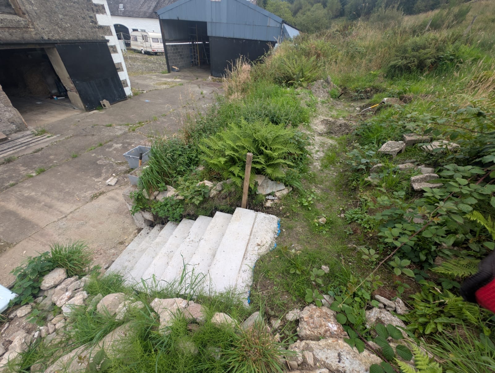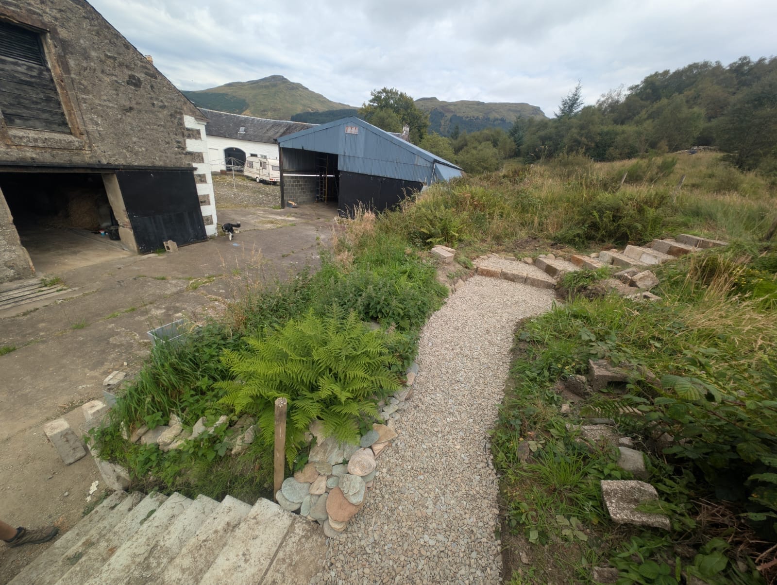 While the first part of the steps in July was made from concrete, the topography allowed us to finish the second half using less intrusive materials.