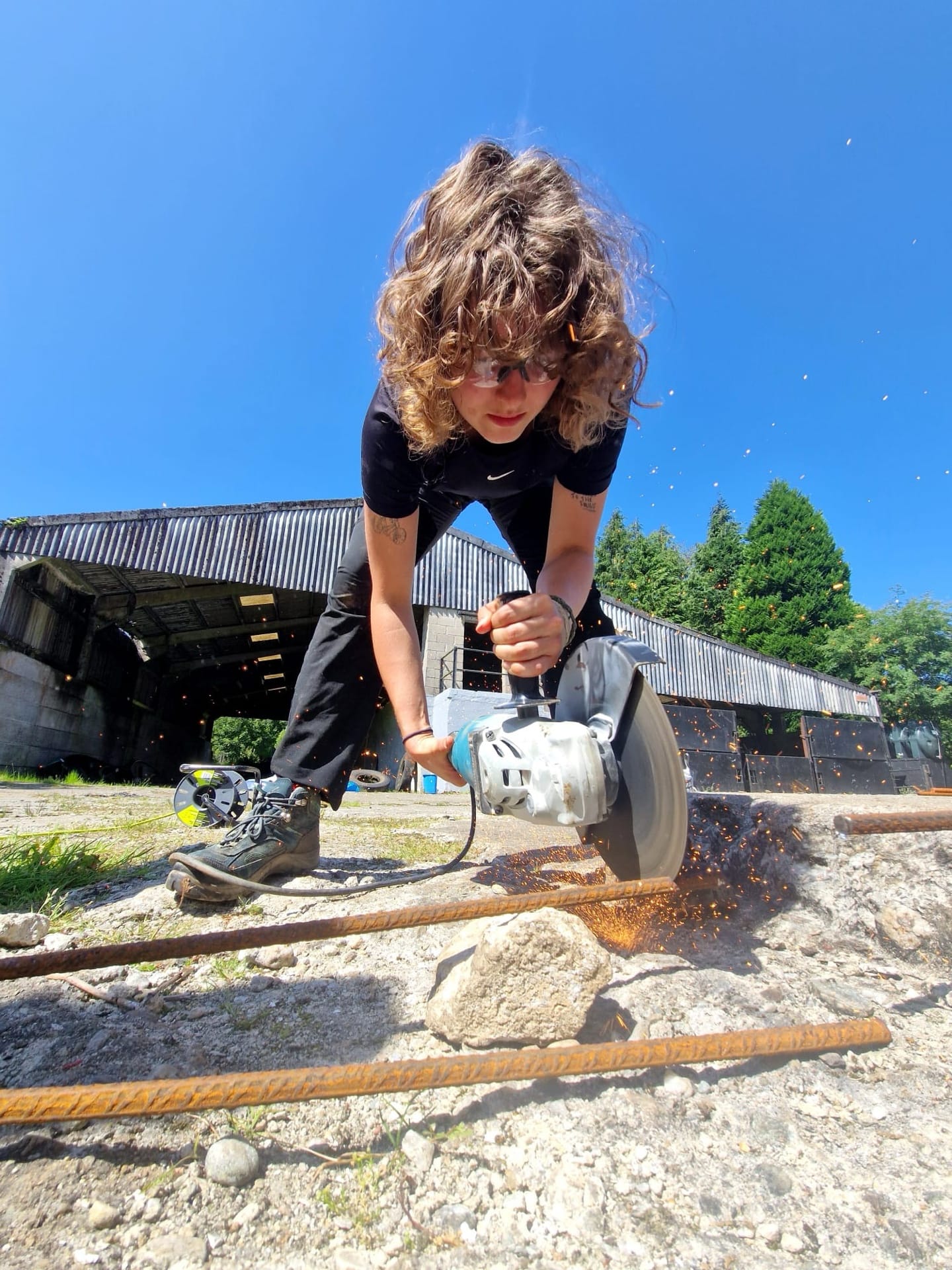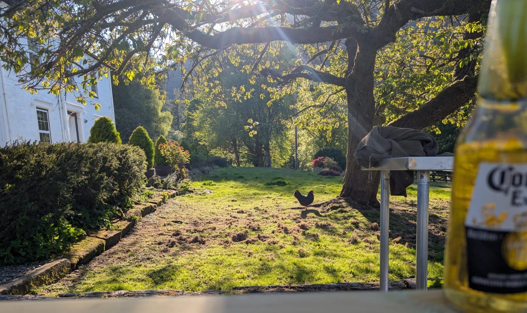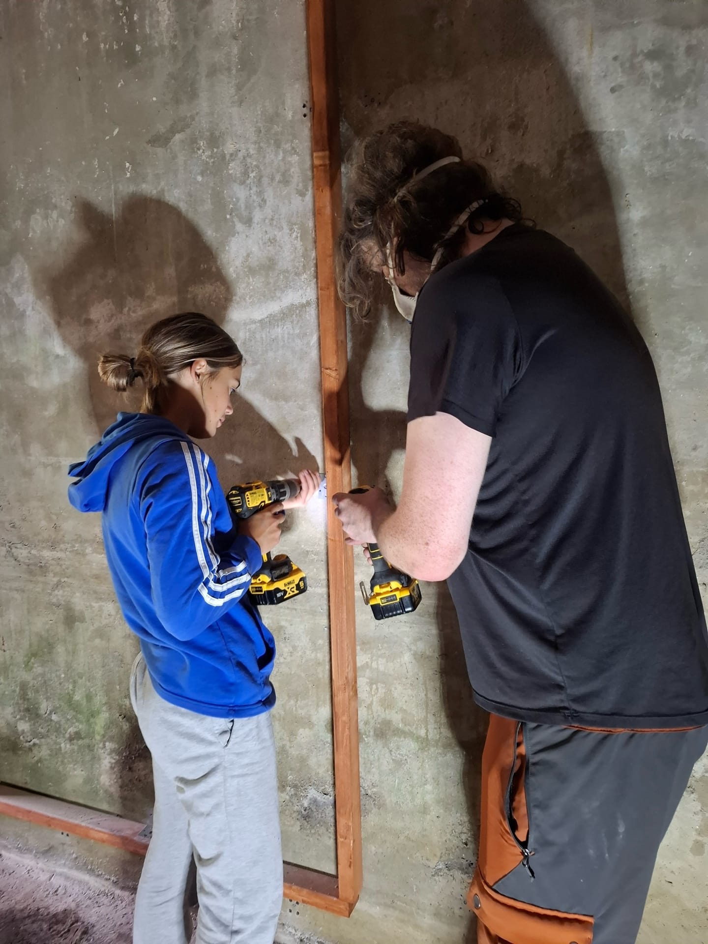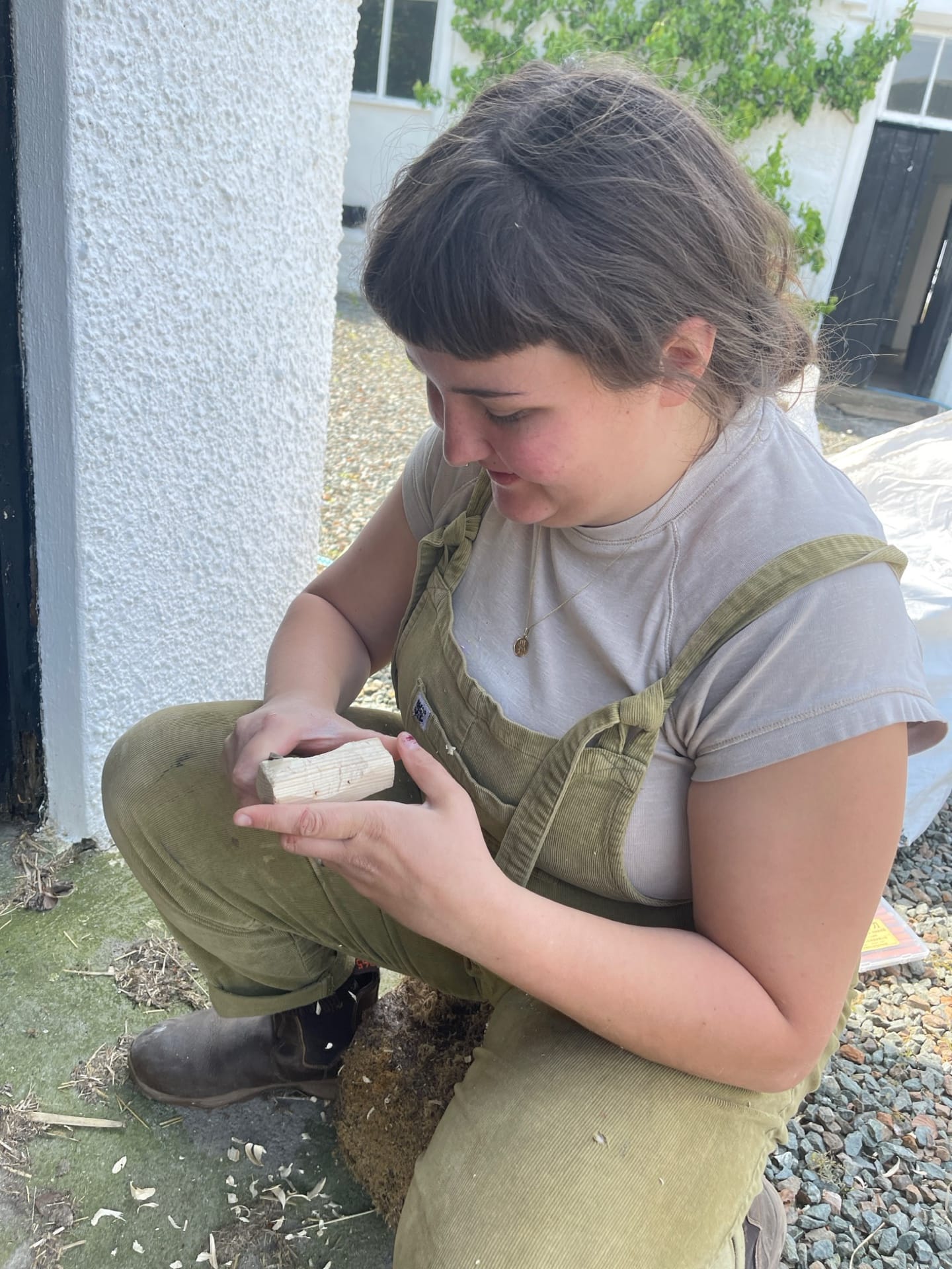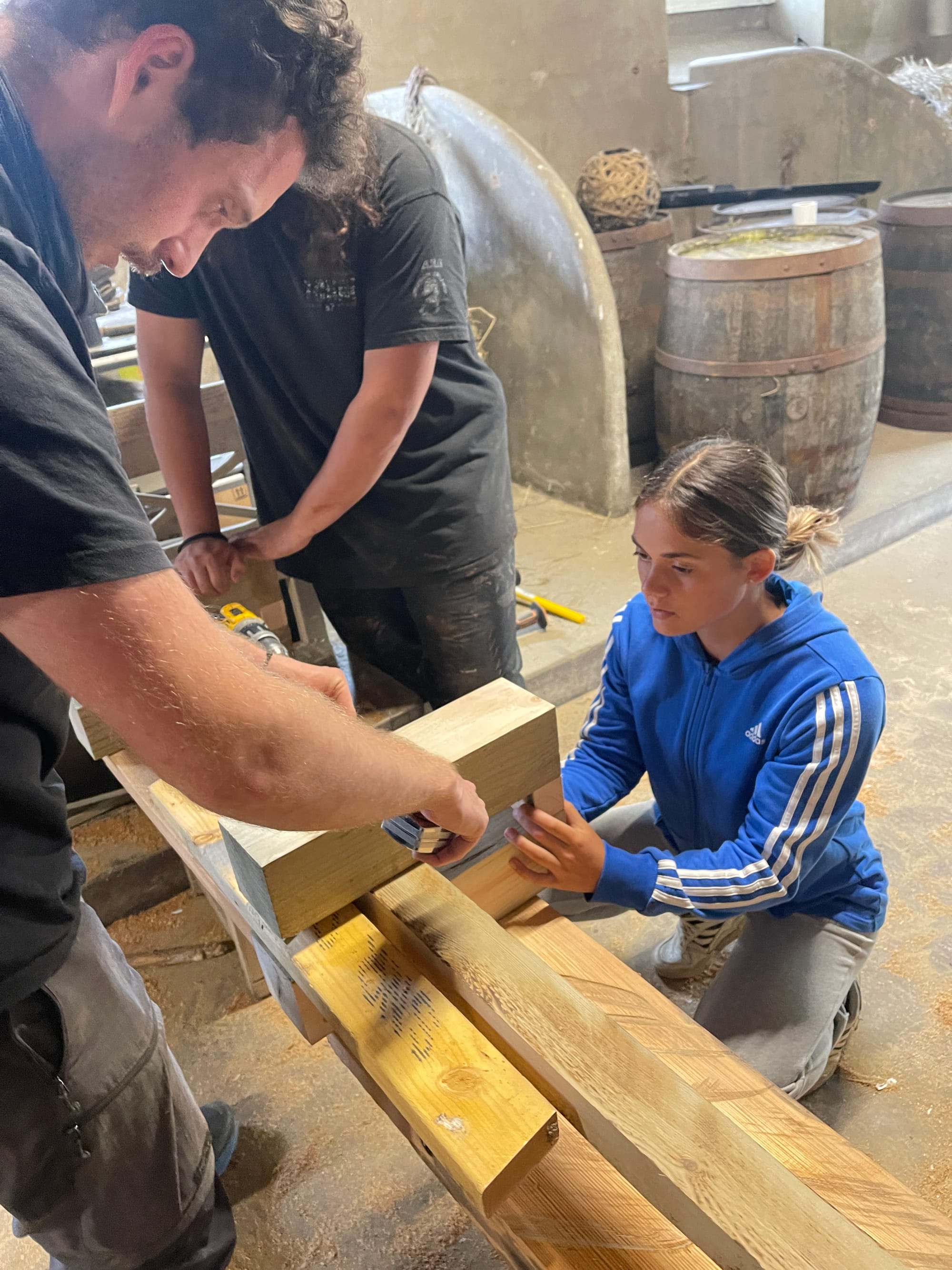 The main project Rowena and Dylan tackled was turning the garage into a proper home for the chickens. Using leftover wood and chicken wire, we put up a partition and installed a door along the middle line of the garage. We filled the chicken area with woodchips and furnished it with tree trunks and a chicken swing made from rope we found in one of the barns.