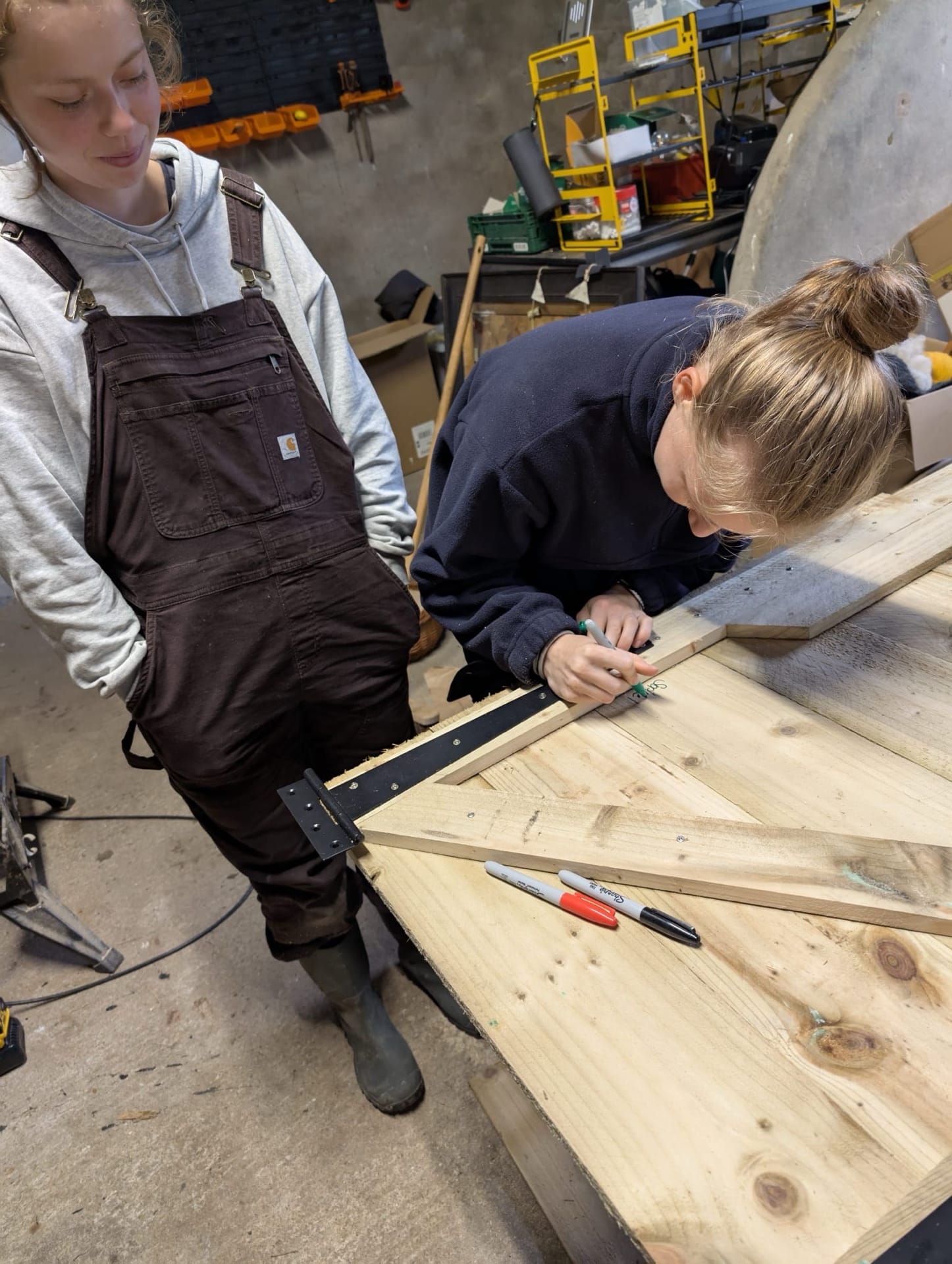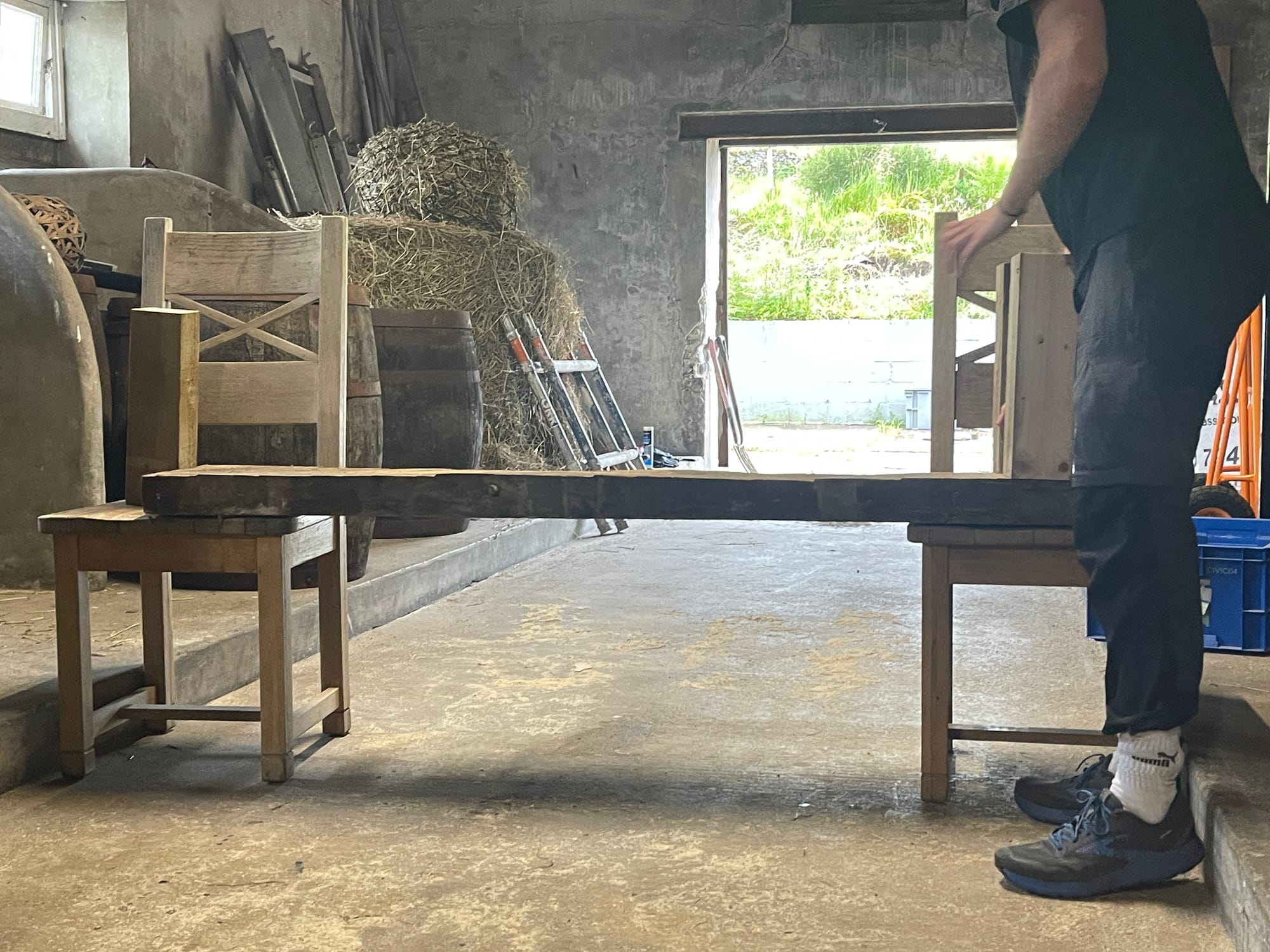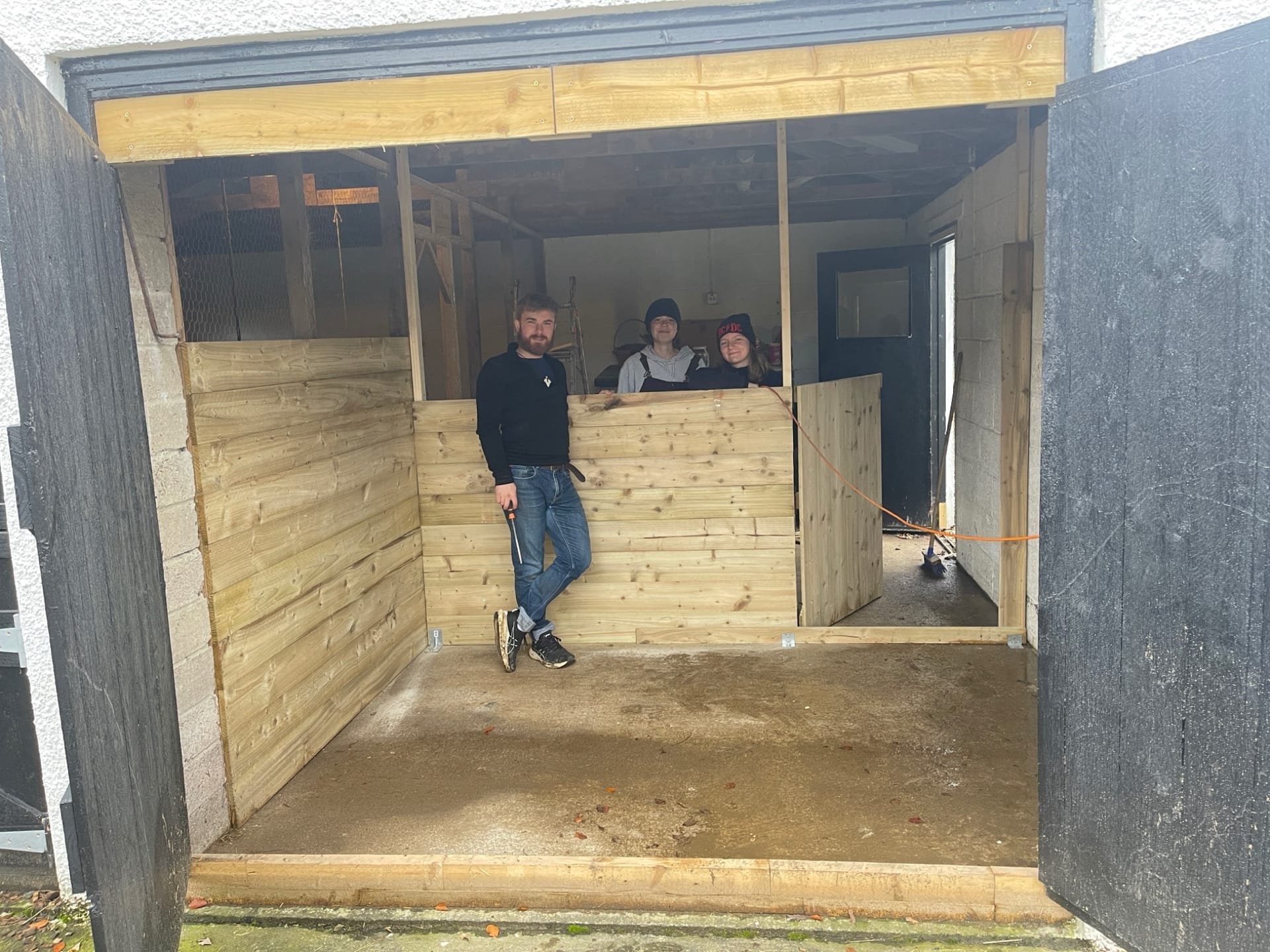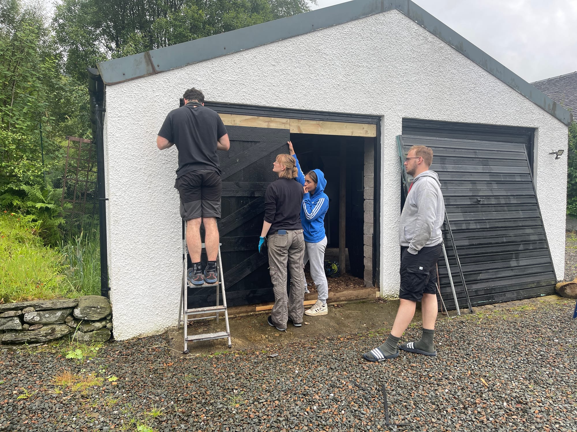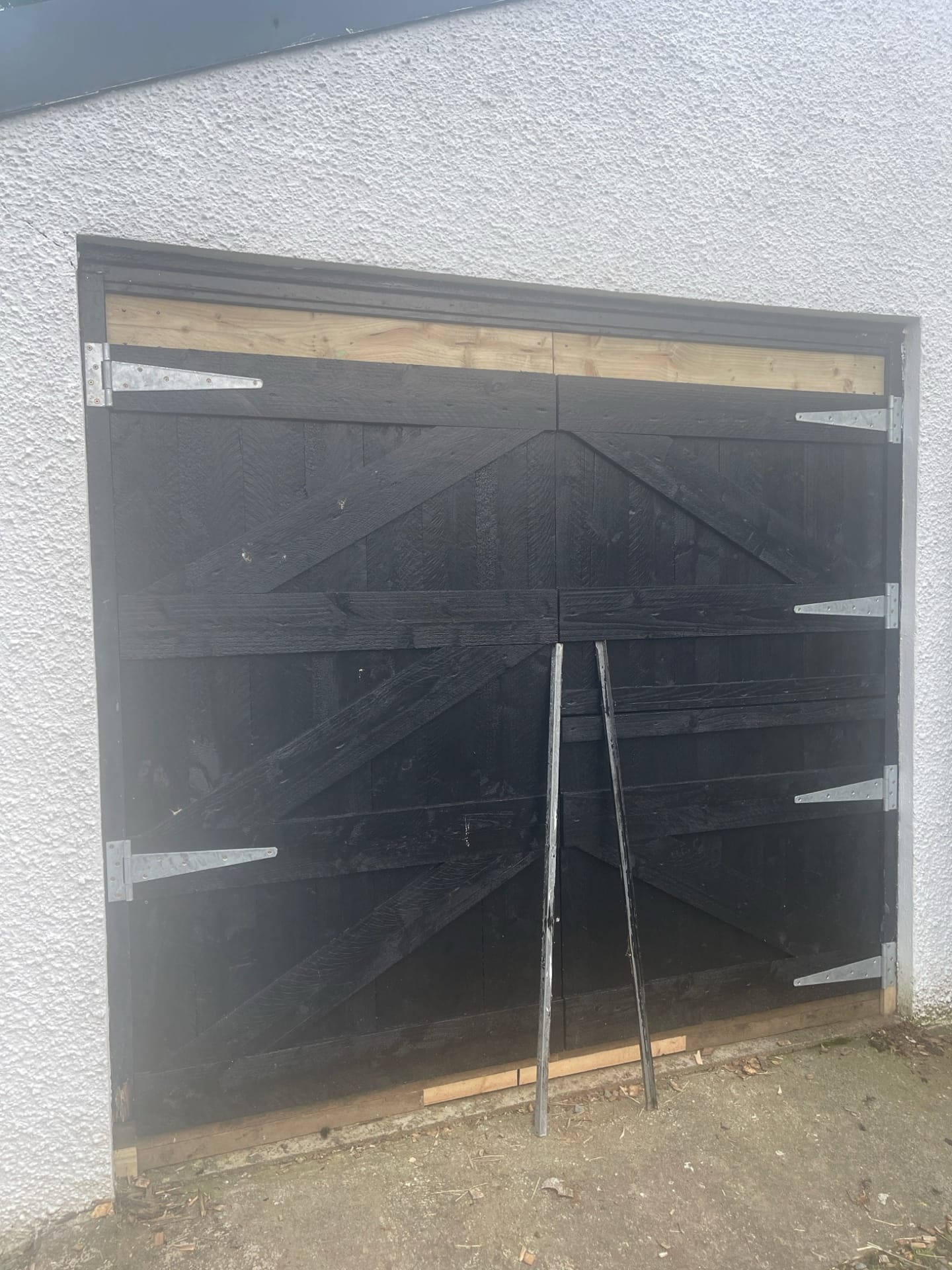 To replace the awkward garage doors, we built new ones from spare wood, designed to mirror the existing farm doors around Glenshellish.