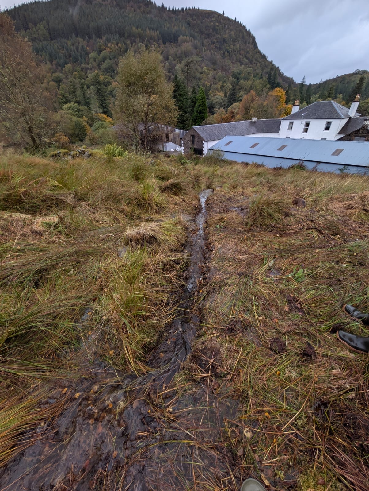 A back-breaking task. To improve drainage and water flow in the part of the upper field immediately above the steading, we manually cleared two waterways. Because the upper field is marked for rewilding and we want to keep intervention as minimal and natural as possible, this had to be done by hand. It was not possible to do this work several days in a row, so the project stretched significantly into the next section.