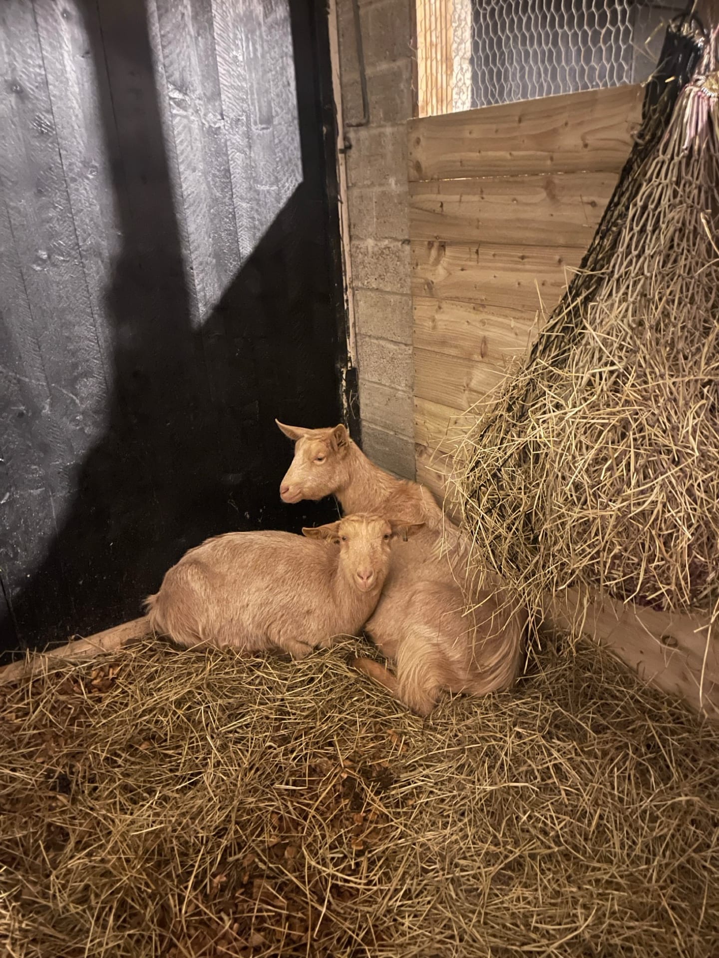 We found out we were able to get goats, so the space next to the chickens was converted into a goat stable.